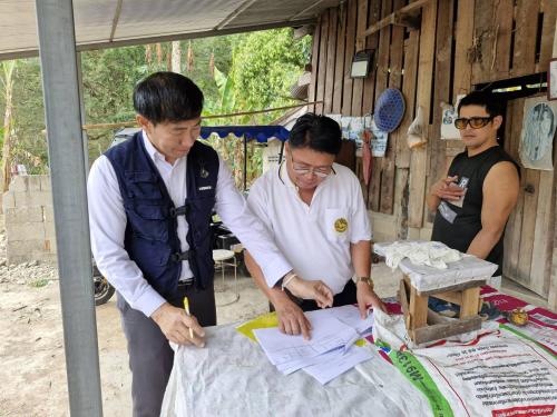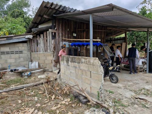นายทินกร มาชม พัฒนาการอำเภอเมืองปาน พร้อมเจ้าหน้าที่พัฒนาชุมชนลงพื้นที่ ณ บ้านทุ่งแล้ง หมู่ที่ 10 ตำบลบ้านขอ อำเภอเมืองปาน ครัวเรือนเป้าหมายนายพิทักษ์สิน กำลังมาก บ้านเลขที่ 109 หมู่ 10 ตำบลบ้านขอ อำเภอเมืองปาน จังหวัดลำปาง เป้าหมายเป็นผู้พิการตาบอดทั้งสองข้าง ไม่มีผู้ดูแลและไม่มีอาชีพ ไม่มีรายได้ ปัจจุบันอาศัยอยู่ในพื้นที่ ที่ญาติพี่น้องสร้างให้ชั่วคราว บนที่ดินของพ่อแม่ที่เสียชีวิตมอบไว้ให้เป็นมรดก ไม่มีความมั่นคง จึงเป็นครัวเรือนเป้าหมายที่ตกเกณฑ์รายได้ของข้อมูลความจำเป็นพื้นฐาน(จปฐ.) ประจำปี 2568